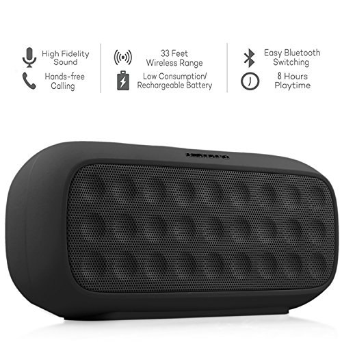 Wireless Blue-tooth Speaker w/HD Sound, Hiatapo Portable FM Radio, 33FT Blue-tooth Range, Hands Free Calling Mic, TF Card, 3.6mm USB AUX Input, 8 Hour Play for Hiking, Pool, Beach, Golf, Home -Black