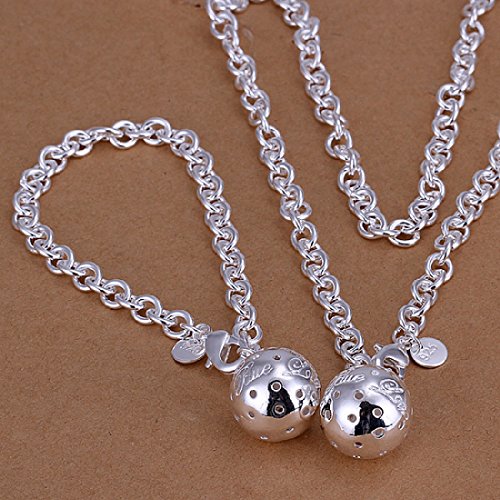 - Title : Hot Sale Wedding Fashion 925 Silver Plated Jewelry Set Hand Chain Bracelet Necklace Big Balls Pendant