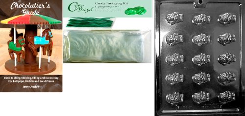 Cybrtrayd Bite Size Santa's Chocolate Mold with Chocolatier's Bundle of 25 Cello Bags, 25 Green Twist Ties and Chocolatier's Guide