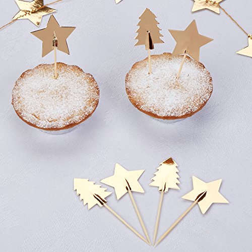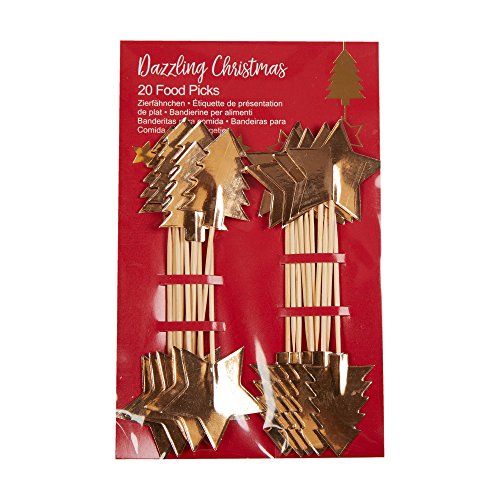 Neviti Dazzling Christmas Gold Foil Trees and Stars Food Picks