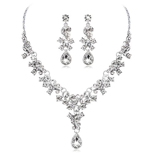 (Urberry)/Personal Care/Bath Body/DIRECT FROM USA/Urberry Wedding Necklace Earring Set, Crystal Necklace and Earrings Jewelry Set Gifts (Silver)