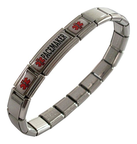 -. Binding : Jewelry -. Brand : Gadow Jewelry -. Department : womens -. Feature : stainless steel bracelet stretches over your hand / Any size. We will send a standard 7 inch bracelet unless you contact us with another size. / links or charms can be taken out, more added, moved around / you will receive instructions on how to take out or add links or charms -. Label : Gadow Jewelry -. Manufacturer : Gadow Jewelry -. MPN : B3TN2JS -. PartNumber : B3TN2JS -. ProductGroup : Jewelry -. ProductTypeName : FASHIONNECKLACEBRACELETANKLET -. Publisher : Gadow Jewelry -. Studio : Gadow Jewelry -. Title : Pacemaker Medical ID Alert Italian Charm Bracelet