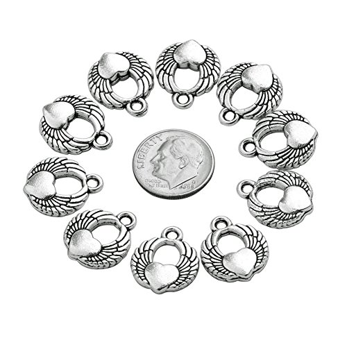 20 Pieces Angel Wings Heart Lucky Charms Reversible Findings Jewelry Pendants Necklaces Making 18 X 15mm
