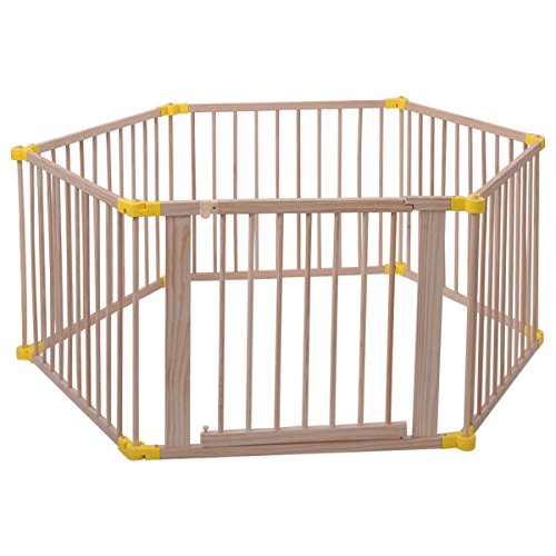 Product DescriptionSpecifications Material: Solid Pine Wood Color: Wood Individual Panels: 35" x 28" per side 10 bars per side No Painting Package include: 1 x Playpen0