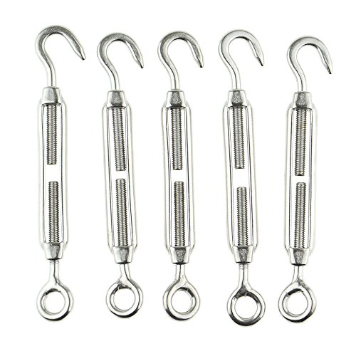 304 Stainless Steel Hook & Eye Turnbuckles M5 Wire Rope Tensioners Pack of 5