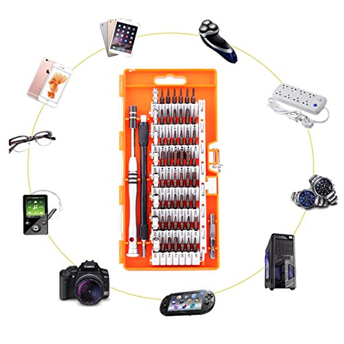- 【60 in 1 Screwdriver Set】Includes 56 screwdriver bits, you can open iPhone, Cell Phone, iPad, Tablet, PC, Glasses, Samsung, Laptop, Computer, macbook, Camera, PDA housings, PSP, NDS and MP3 player, include all you would need repair or fix all small things and Other electronic devices