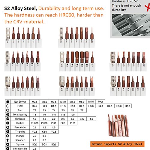 - 【High Grade German imports S2 Alloy Steel】The precision screwdriver set is made of S2 Alloy Tool Steel, an ultra durable material with hard-wearing quality, Light weight, Impact resistant and compact design-style