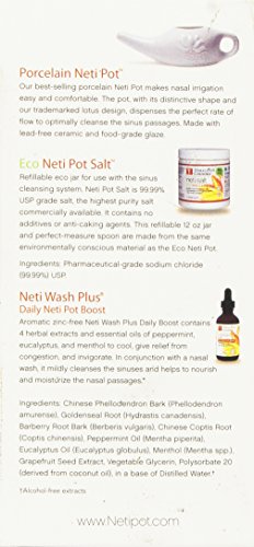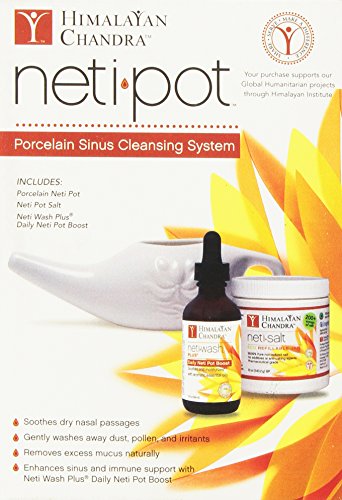 -. Binding : Health and Beauty -. Brand : Himalayan Institute -. Feature : The Neti Pot Starter Kit contains everything needed for a daily nasal wash routine / Naturally removes excess mucus, pollen, dust, and other environmental irritants from the sinus passages / Enhances sinus and immune support with Neti Wah Plus / Made with lead-free ceramic and glaze; illustrated instructions are included -. Label : Himalayan Institute -. Manufacturer : Himalayan Institute -. ProductGroup : Health and Beauty -. ProductTypeName : HEALTH_PERSONAL_CARE -. Publisher : Himalayan Institute -. Studio : Himalayan Institute -. Title : Himalayan Institute Original Neti Pot Complete Sinus Cleansing System Starter Kit