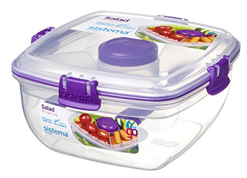 Sistema To Go Collection Salad to Go Food Storage Container, 37 Ounce/ 4.6 Cup, Clear with Assorted Color Accents