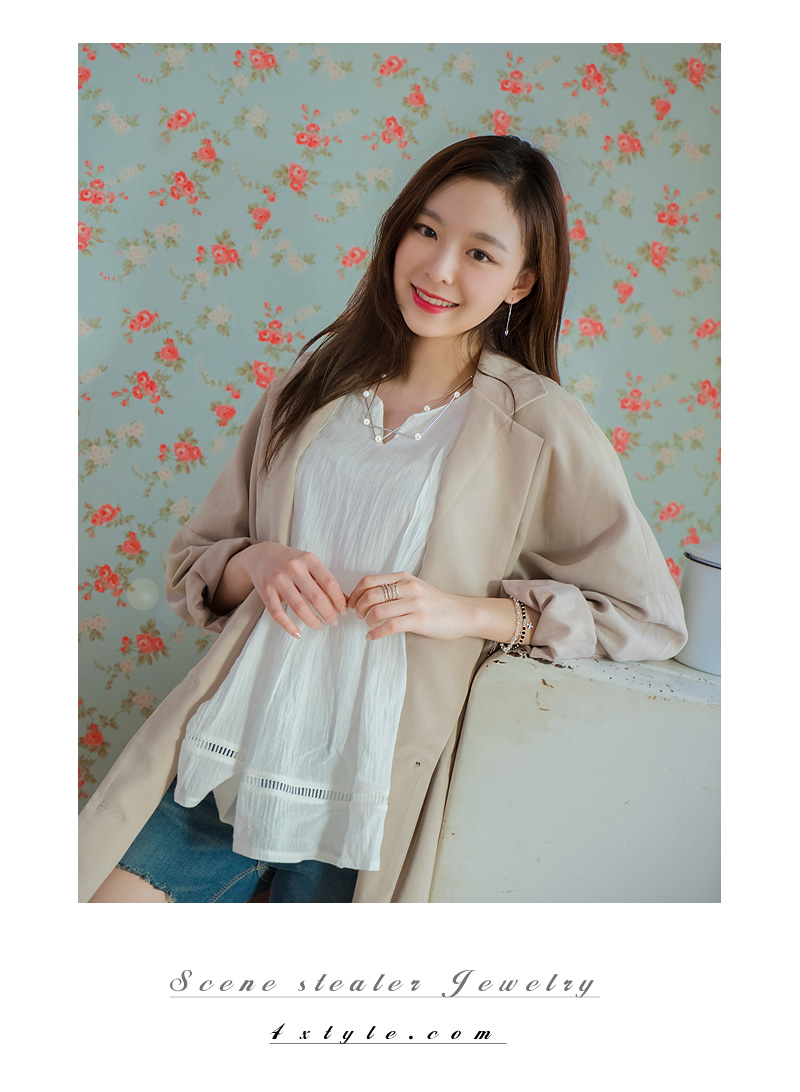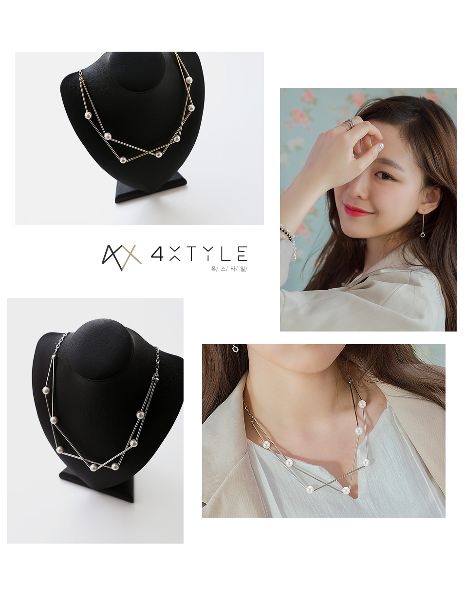 두줄을 레이어드 한듯해서 하나만 착용해도 화려하고 포인트 되는 아이템. 여유체인으로 사이즈 조절이 가능해 실용적인 제품.