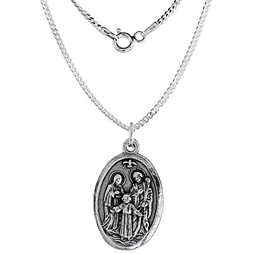 -. Binding : Jewelry -. Brand : Sabrina Silver -. Department : womens -. Feature : Holy Family Saint Joseph, Blessed Virgin Mary & Child Jesus is the / Solid Sterling Silver / Excellent Quality Workmanship, nice detail / Sold with or without a chain / To Choose from a Large Variety of available Italian Sterling Silver Chains Please follow this Link: www.amazon.com/s/ref=nb_sb_noss?url=me%3DA2LPCXI4JWH6NE&field-keywords=silver+chain -. Label : Sabrina Silver -. Manufacturer : Sabrina Silver -. ProductGroup : Jewelry -. ProductTypeName : FASHIONNECKLACEBRACELETANKLET -. Publisher : Sabrina Silver -. Studio : Sabrina Silver -. Title : Sterling Silver Holy Family Medal Necklace St Joseph Blessed Virgin Mary & Child Jesus Oval 1.8mm Chain