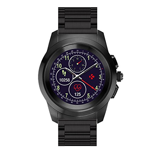 MyKronoz ZeTime Elite Hybrid Smartwatch 44mm with mechanical hands over a color touch screen – Brushed Black/Metal Link (Certified Refurbished)