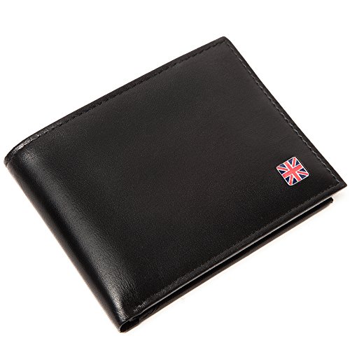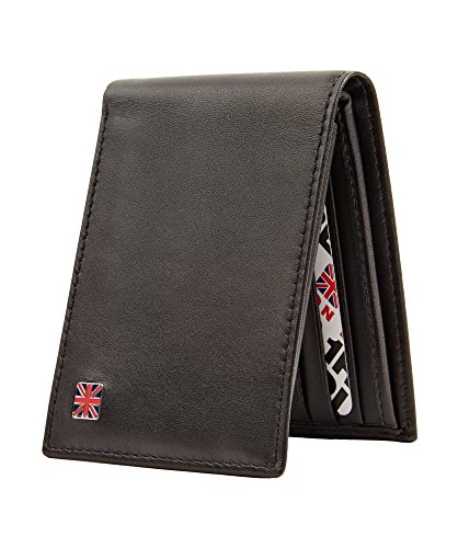-. Feature : Measures 4 1/4" x 3 1/2" x 1/2" / 7 interior credit card pockets and 2 interior hidden pockets / Removable insert with double ID windows / 2 center bill compartments / Union Jack inspired enamel inlay