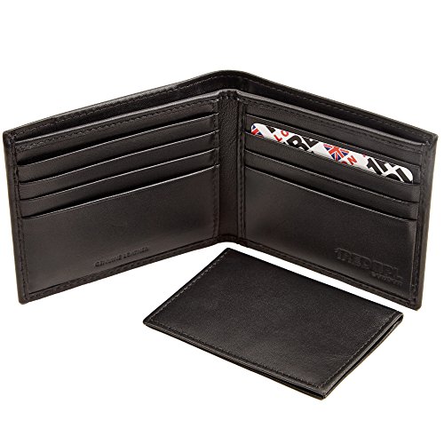 -. Title : 1redplace Mens Lambskin Black Leather Multicard Bifold with Removable Passcase Wallet