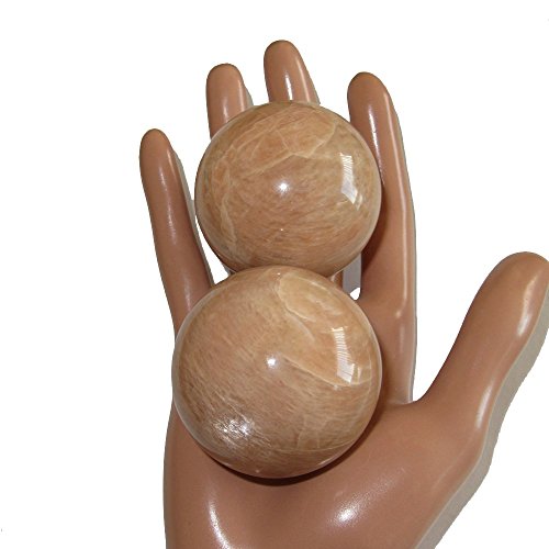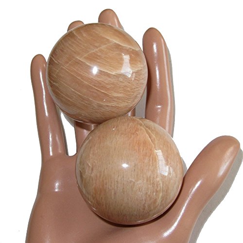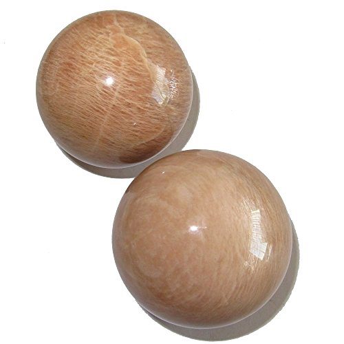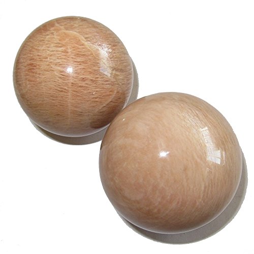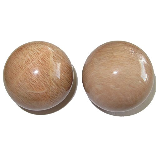 Your crystal sphere set is made from genuine moonstone. This is known as peach moonstone, and you will find silver sheen on the surface when held at the right angle of light. Your sphere pair is shiny and polished yet retains rough grooves and edges native to genuine gemstones. Receive the exact one featured when you order from Satin Crystals.