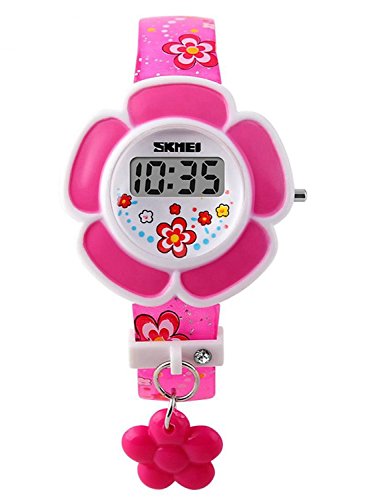 Bo Yi Kid's SK1144A Novelty Cute Flower Shape Digital Watch Rose Red