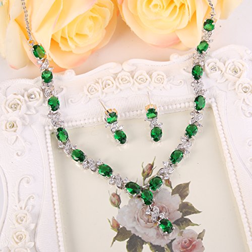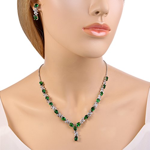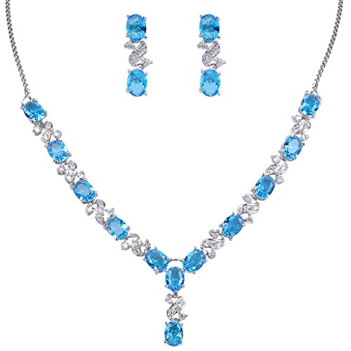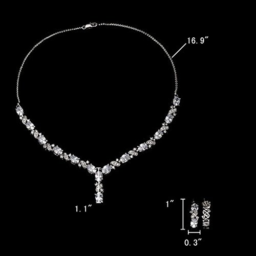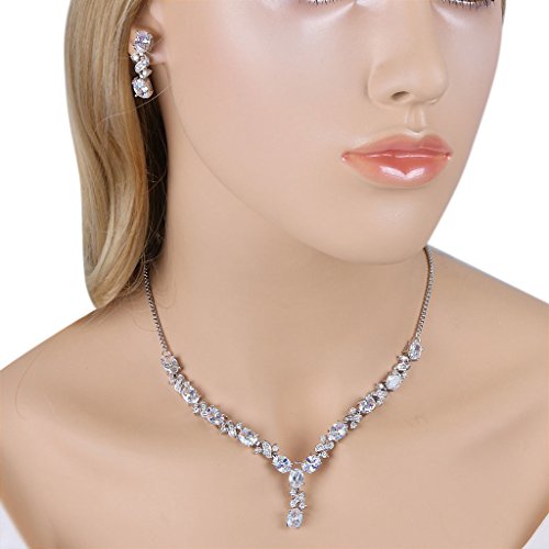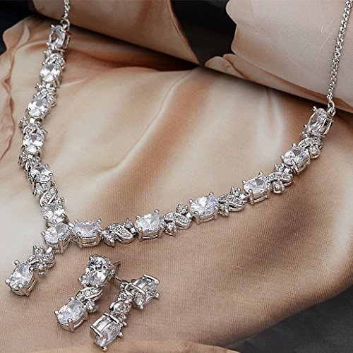 -. Title : EleQueen Women's Silver-tone Cubic Zirconia Oval Shape Leaf Bridal Necklace Earrings Set