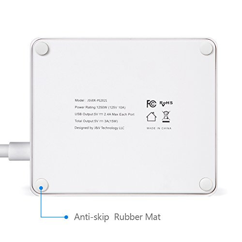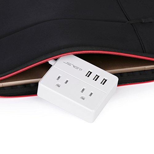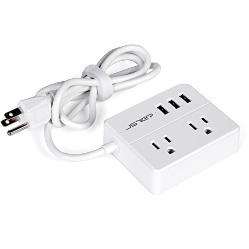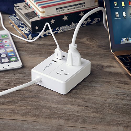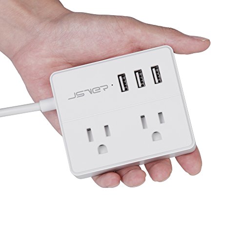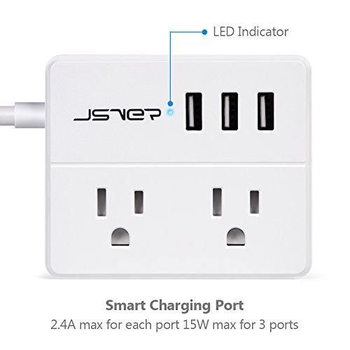 JSVER 2 Outlet Portable Travel Power Strip with 3 Smart USB Charging Ports and 3.9 Ft Cable, White