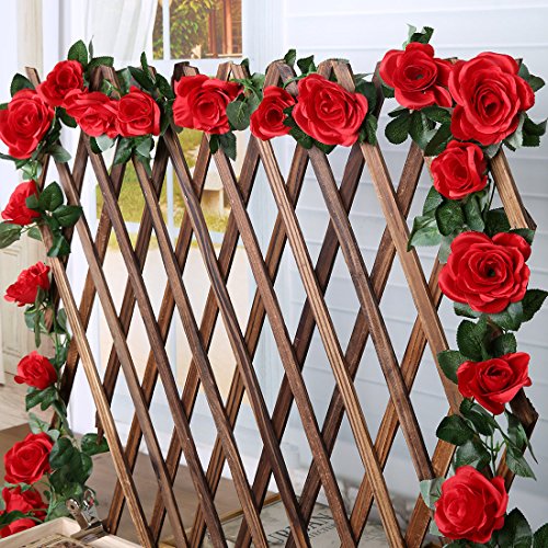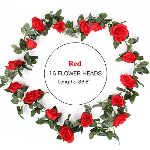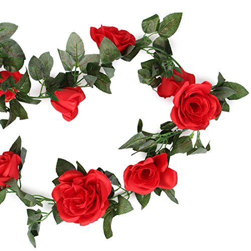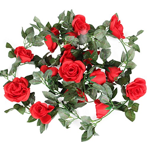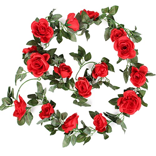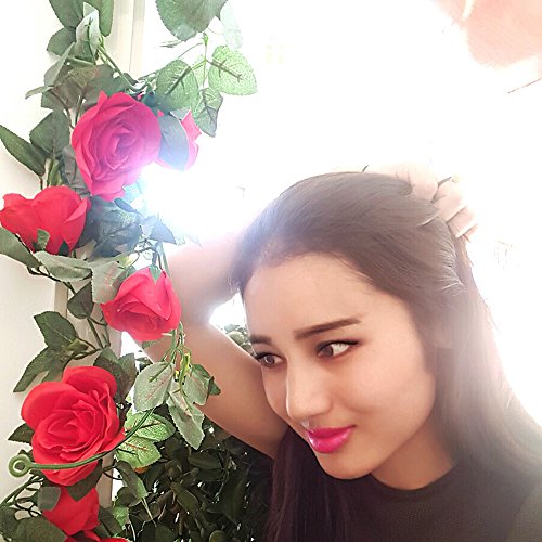 Luyue Vintage Artificial Silk Rose Flower Ivy Vine Leaf Garland Hanging Vine Wedding Home Indoor/Outdoor Decor (2 Pcs) (Red)