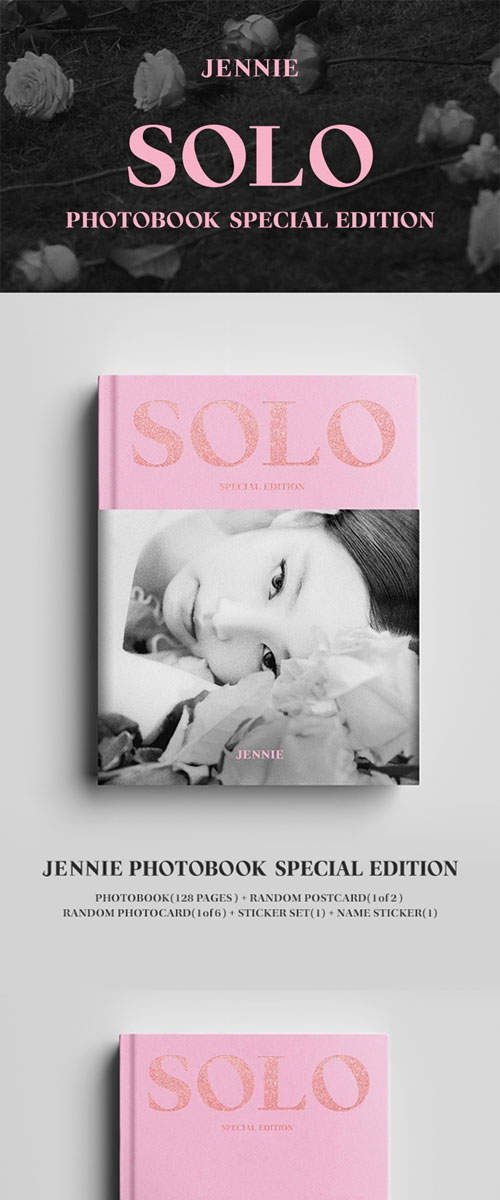 韓国スター写真集 BLACKPINKのジェニ - JENNIE [SOLO] PHOTOBOOK -SPECIAL EDITION- (フォトブック128P+はがき1種+フォトカード1種+ステッカーセット+ネームステッカー)