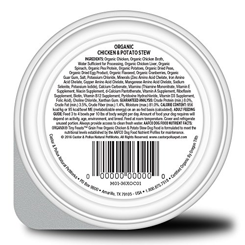 -. Title : Castor & Pollux Organix Tiny Feasts Grain Free Organic Chicken Recipe Wet Dog Food, 3.5 oz, case of 12