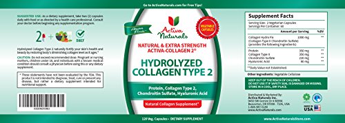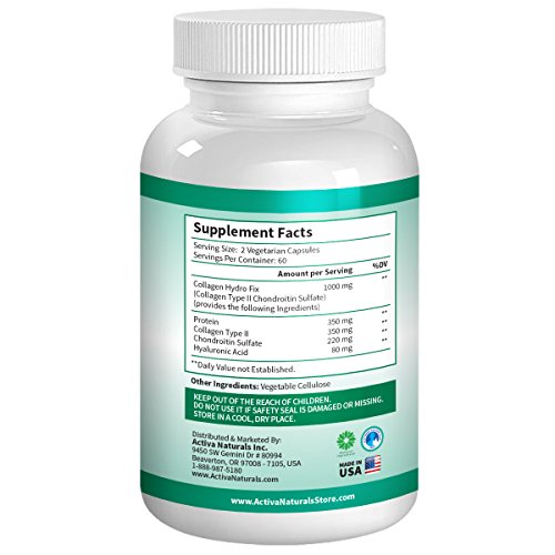 A TRUSTED BRAND - Activa Naturals is Known for their Natural and Herbal Specialty Vitamins providing you the highest quality ingredients - Our Focus is Giving you the best Collagen Type-2 Capsules rather than Making Any Claims about our products - Unique blend of Collagen 2, Protein, Chondroitin Sulfate and Hyaluronic Acid to support Active Lifestyle*