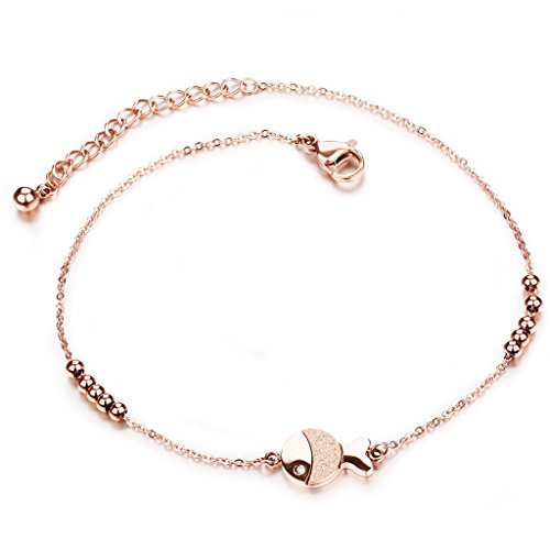 -. Title : PNBB Titanium Steel Lovely Fish Pendant Anklet Rose Gold Plating