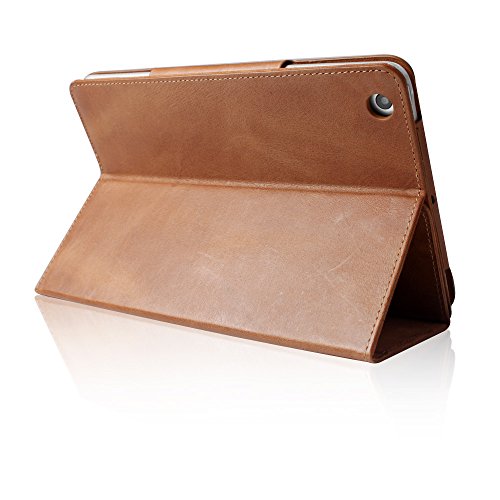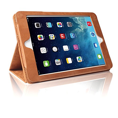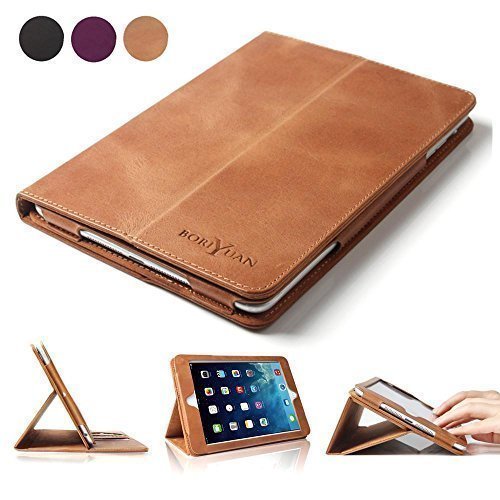iPad Mini Case, BoriYuan Vintage Genuine Leather Smart Cover Protective Slim Folio Flip Stand for Apple iPad Mini 3/ Mini 2/ Mini 1 with Card Slot Magnetic Sleep/Wake+Stylus+Screen Protector, Brown
