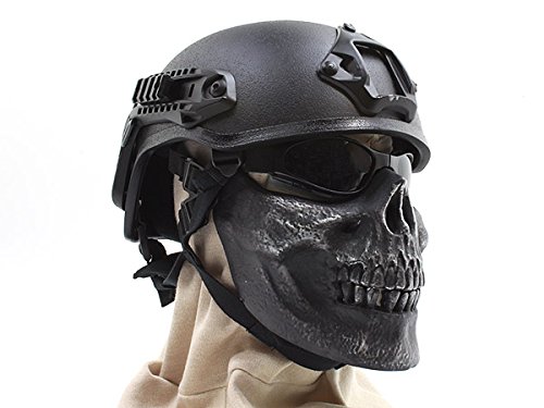 -. Binding : Misc. -. Brand : JustBBGuns -. EAN : 0816008020519 -. Feature : Allows player to breath easily and goggles can also be worn / Foam Padded inside / Adjustable Straps for a comfortable fit / Unique design giving you the real skull look / Could also be used for Fancy dress -. Label : JustBBGuns -. Manufacturer : JustBBGuns -. ProductGroup : Sports -. ProductTypeName : SPORTING_GOODS -. Publisher : JustBBGuns -. Studio : JustBBGuns -. Title : JustBBGuns Airsoft Half Face Skull Mask -. UPC : 816008020519