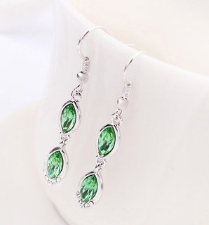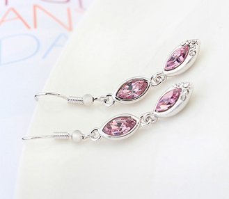 -. Title : Alloy Double Oval Swarovski Crystal Drop Earrings