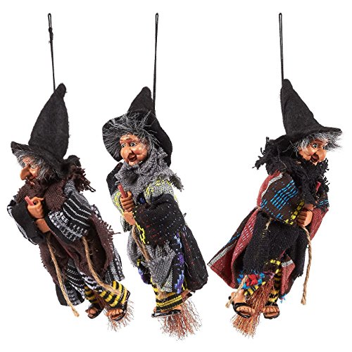 Studio : Juvale Publisher : Juvale Binding : Kitchen Product Description Spice up your Halloween decorations with these set of 3 hanging witch decorations. Each of these witches have their own sense of style. Are they up to mischief or just enjoying their day off from doing witch things? Hang them outdoors and watch them sway in the wind! When you're feeling down, the smiling expressions on these witches will cheer you up. Using the string on top you can easily hang these decorations anywhere with a hook, such as on porches and even indoors. Get 3 witch decorations at a value price! Make sure to have this set on hand during the Halloween season! Each witch measures 3 x 9.5 x 2 inches. 0