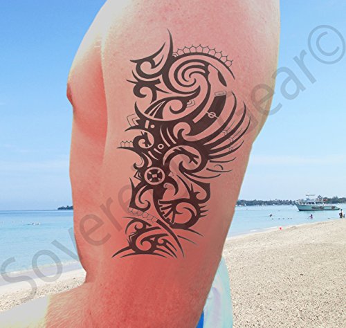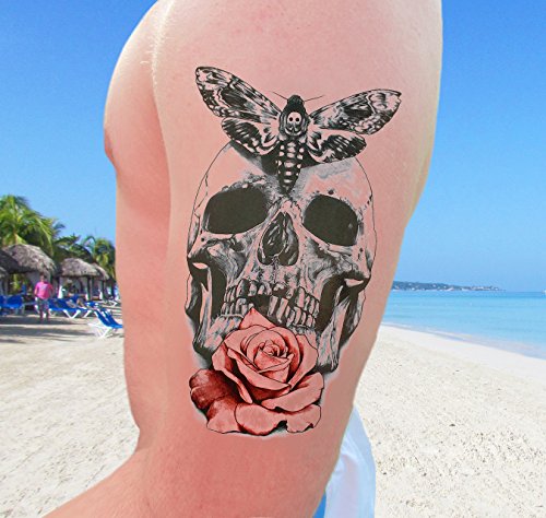 Large Temporary Tattoos for Guys for Men & Teens Fake Tattoo Stickers (8 Sheets) Biker Tattoos, Rocker Transfers for Arms Shoulders Chest & Back - Boys Tattoos Body Art Tattoo Sticker Waterproof Black