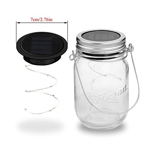 - Energy Saving Solar Panels: Come with 2V 70mA solar panels, the solar mason jar lights will get full charge within 4-6 hours; It will light up for 6-10 hours when it got full charge. No need wire, really eco-friendly, save energy