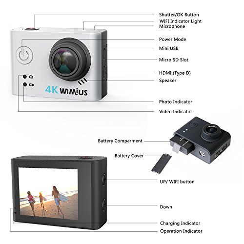 【Ultra HD 4K Action Camera】Equipped with Sony Sensor & Novatech 96660+ Chipset . The WIMIUS L2 WIFI Action Camera comes with 2.0 inch high definition display screen. Support 4K resolution clear and vivid shooting.