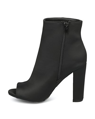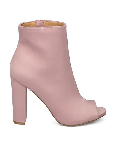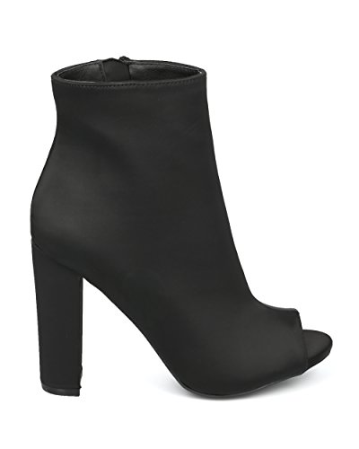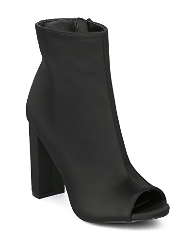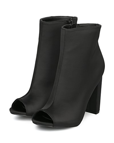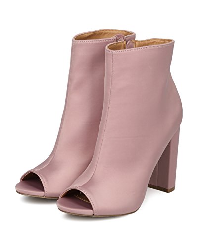 Studio : Wild Diva Publisher : Wild Diva Binding : Apparel Product Description These simple yet classy booties are a must in your shoe closet! They are made with a satin upper, peep toe and stitch accents. Also made with a single sole, block heel and side zip for easy slip on and off. 0