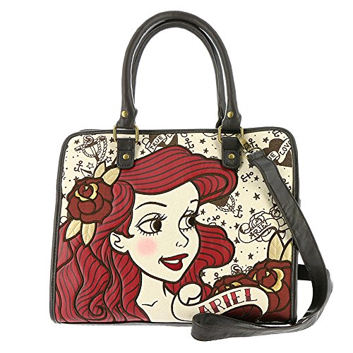 *An adorable way to take Princess Ariel from under the sea to on your arm *Printed canvas and faux leather material *Top zipper closure *Dual carry handles *Removable, adjustable crossbody strap *Interior has one zippered pocket and two slide pockets *17.75"Lx6.25"Dx11"HFeature