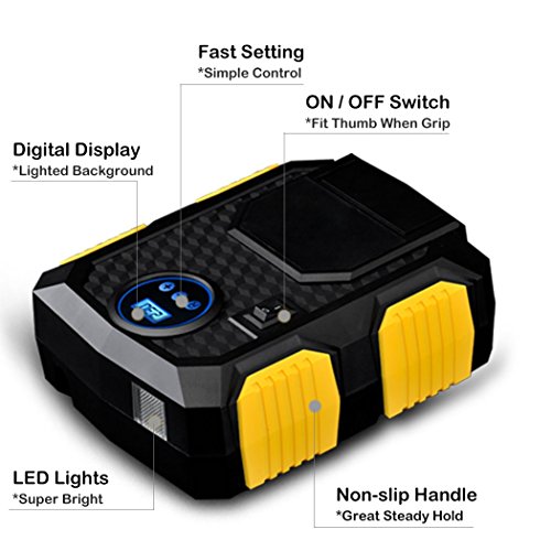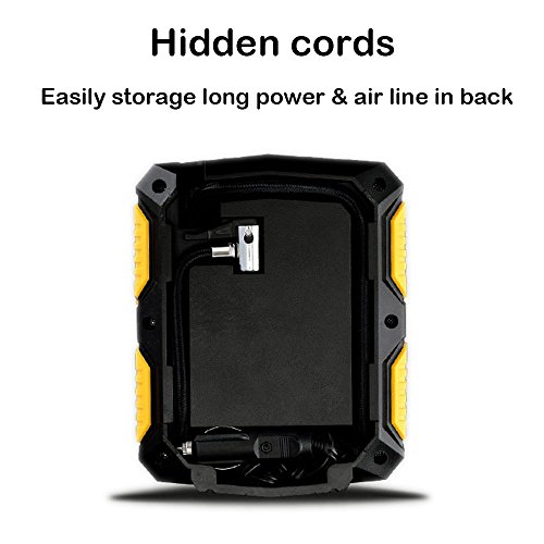 PORTABLE TIRE INFLATOR: Compact anti-skid housing, lightweight, 3m hidden power cord long enough to get to all your tires.