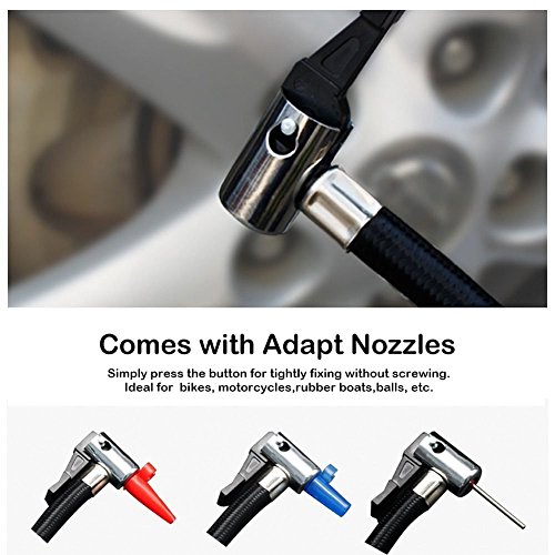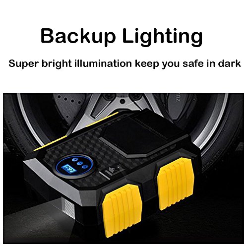 UTILITY: Multiple adapters for car tires, sport balls and air mattress. Strong lighting can be a emergency torch in dark. Backup fuse included.