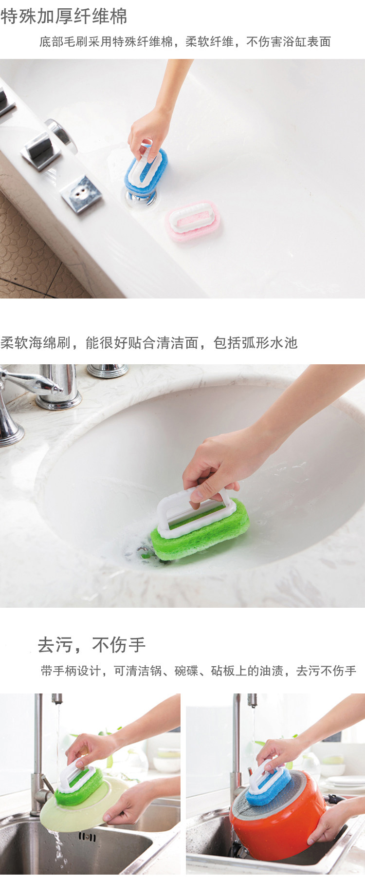 卫浴清洁带手柄去污刷 加厚型浴缸刷 海绵刷子