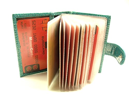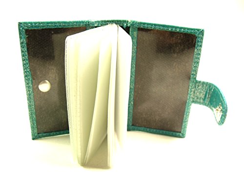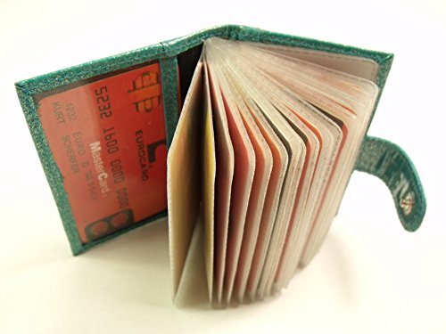 Product Description MENS LADIES CREDIT CARD HOLDER IN GREAT FUN COLOURS AND STYLES WITH 20 PLASTIC SLEEVES FOR CARDS 2 EXTRA SLOTS ON EITHER SIDE OF THE WALLET MEASUREMENTS 7cm WIDE,10cm HIGH, 1.5cm DEEP this is when closed and empty. 0