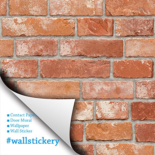 Wallstickery brick pattern contact paper prepasted wallpaper for wall stickers self adhesive removable peel and stick DIY interior decorating home WS-HWP-21632 1.64 ft by 9.84 ft