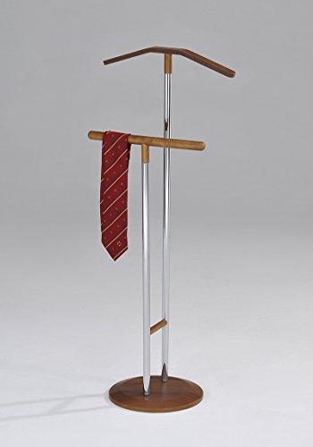 (Kings Brand Furniture)/Kitchen Dining/Storage Organization/DIRECT FROM USA/Kings Brand Chrome Metal / Walnut Wood Suit Valet Rack Stand Organizer