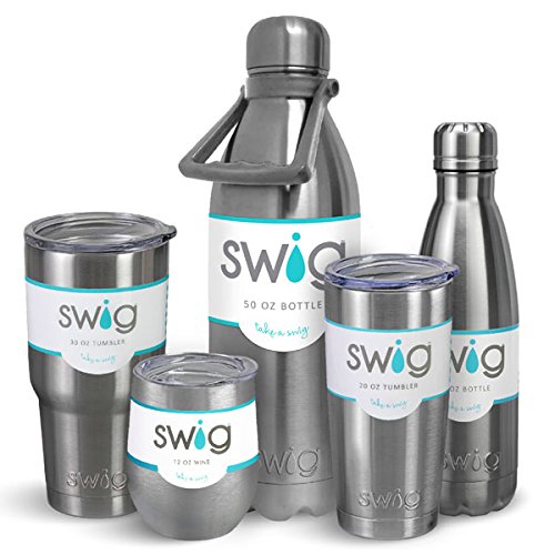 SWiG 50oz travel bottle-stainless steel - why should you choose SWiG? superior temperature retention (hot/cold) - swig's double-wall Vacuum insulated tumblers will keep your drinks seriously cold (or hot!). swigs are engineered to maintain the temperature of your beverage for the maximum time possible with current technology. Vacuum insulation - SWiG premium drinkware uses double-wall vacuum-sealed insulation technology, which means the space between the Stainless Steel walls is void of matter. With no medium for heat to transfer, your Drink's temperature will not be impacted by the outside temperature. 304 grade - 18/8 Stainless Steel - crafted from 304 grade 18/8 Stainless Steel. All drinkware is BPA free, FDA approved, highly resistant to rust, absorbing odor, retaining taste and bacteria, and easy to clean by hand. Clear lids and Stainless Steel caps - the 9oz wine, and 20oz and 30oz tumblers all have a clear push-seal lid while the 17oz and 50oz bottles have a Stainless Steel twist-off cap. Both closures feature a rubber seal gasket for better temperature control and are dishwasher safe. Copper coated inner walls - swig's double-wall Stainless Steel inner walls are copper plated, which provides an additional barrier against heat entering or exiting the vessel. Sweat free - swig's double-wall Vacuum insulation prevents condensation from ever forming on the exterior. Hot liquids will not impact the exterior, either. This means SWiG will always be comfortable to hold and never make a watery mess in your hand or on your table.Feature
