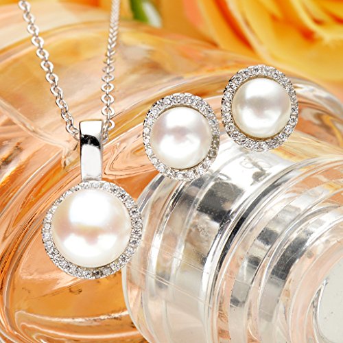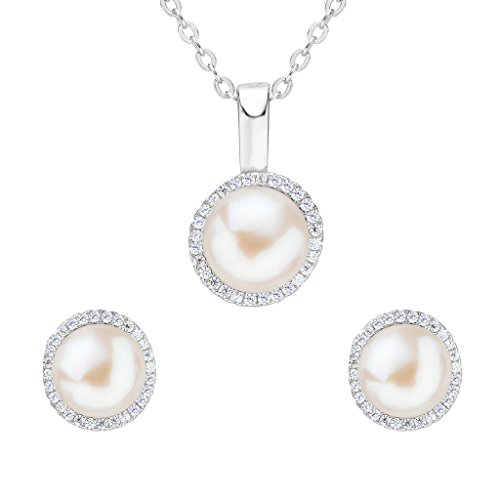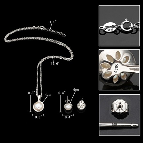 -. Title : EleQueen 925 Sterling Silver CZ AAA Button Cream Freshwater Cultured Pearl Round Bridal Pendant Necklace Earrings Set