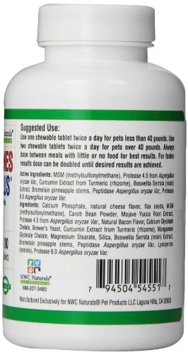 -. Binding : Misc. -. Brand : NWC Naturals -. EAN : 0794504545517 -. Feature : Complete joint and muscle formula for your dog and cats; Stop the pain Now! / Pet- Enzymes Plus has chosen a different and proven way to support the joint health of dogs and cats / A Natural Alternative For Normalizing Pain, Joint Support and Allergies / Better than Glucosamine and Chondroitin Sulfates that may have side effects / Pet-Enzymes Plus is a natural support system for allergies and muscle and joint pain with 14 synergistic pain fighting ingredients -. IsAdultProduct : 0 -. Label : NWC Naturals -. Manufacturer : NWC Naturals -. Model : PE100 -. MPN : PE100 -. NumberOfItems : 1 -. PackageQuantity : 1 -. PartNumber : PE100 -. ProductGroup : Pet Products -. ProductTypeName : PET_SUPPLIES -. Publisher : NWC Naturals -. Studio : NWC Naturals -. Title : NWC Naturals Pet-Enzymes Plus Joint and Allergy Formula for Dogs and Cats -. UPC : 794504545517