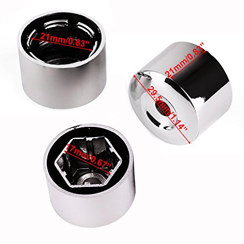 - Feature : 100% Brand new and high quality. Color: Silver. Material: ABS. / These caps fit all wheels with 17mm bolts. / Compatible Model: Volkswagen Golf MK4, Bora, Passat, Beetle, Lupo, Polo,Audi,Skoda etc. / Size: Cap:2.1cm X 2.95cm; Internal diameter:17mm. / Package: Wheel Bolt Nomal Nut Cap x 16; Locking Bolt Cap x4; Removal tool x 1.