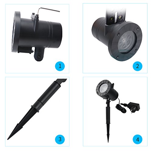 1. Slides easy to change The slides of this led Christmas lights outdoor are very easy to interchange. Unscrew and remove the two screws that holding the slide frame in the light first, and remove the slide to change another one, then screw it in the light.