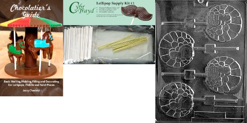 Cybrtrayd "Fancy Turkey Lolly" Thanksgiving Chocolate Mold with Chocolatier's Bundle, Includes 25 Sticks, 25 Cello Bags, 25 Gold Twist Ties and Chocolatier's Guide