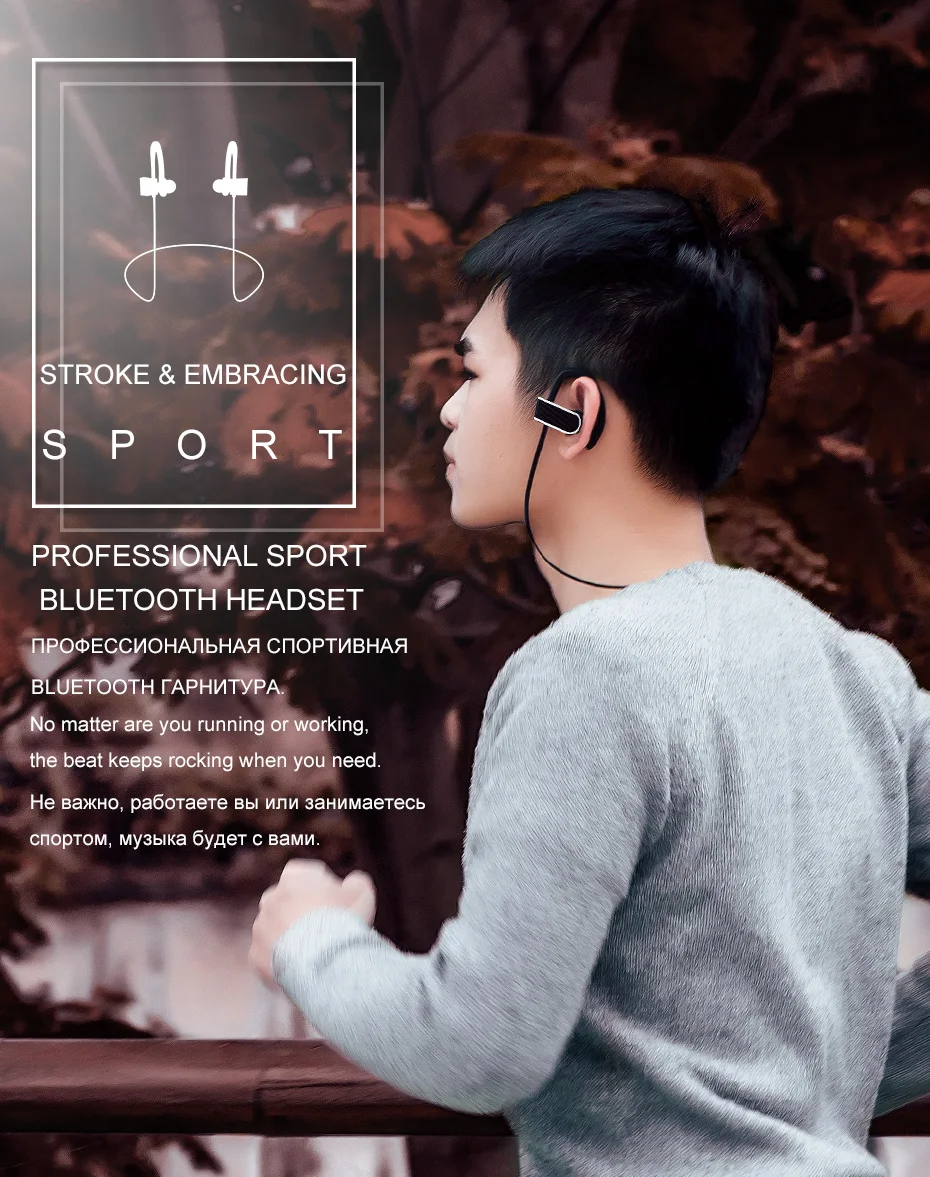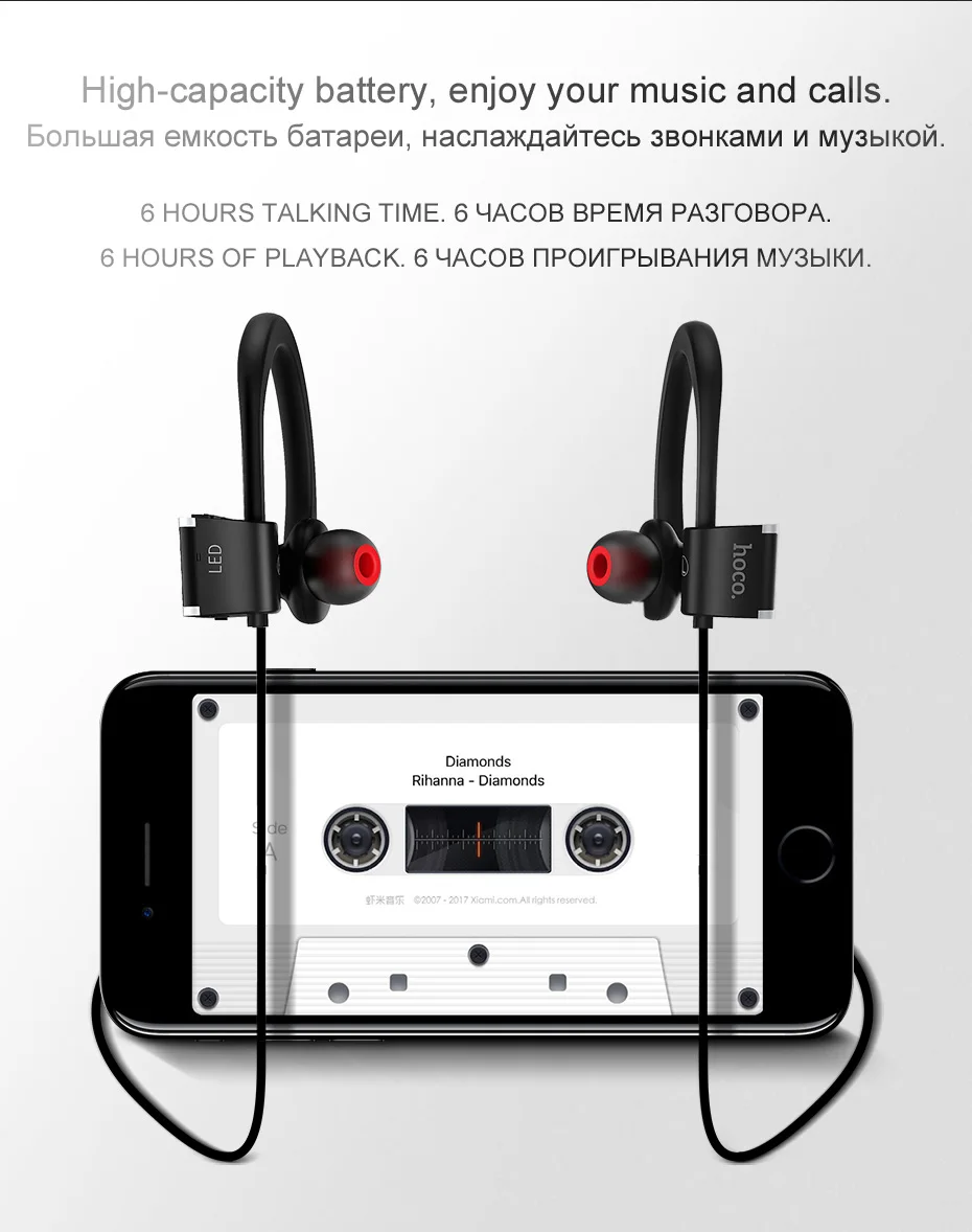 HOCO Sport Earphone ES7 Bluetooth Wireless Music Headset High Capacity Battery Stroke & Embracing Professional Sport Earphone