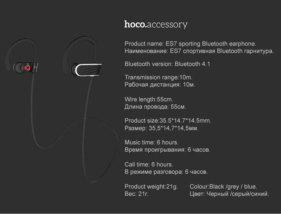 Хоко Спорт наушник ес7 Беспроводная музыка Bluetooth гарнитура высокопроизводительная батарея и охватывающий профессиональный спорт наушник